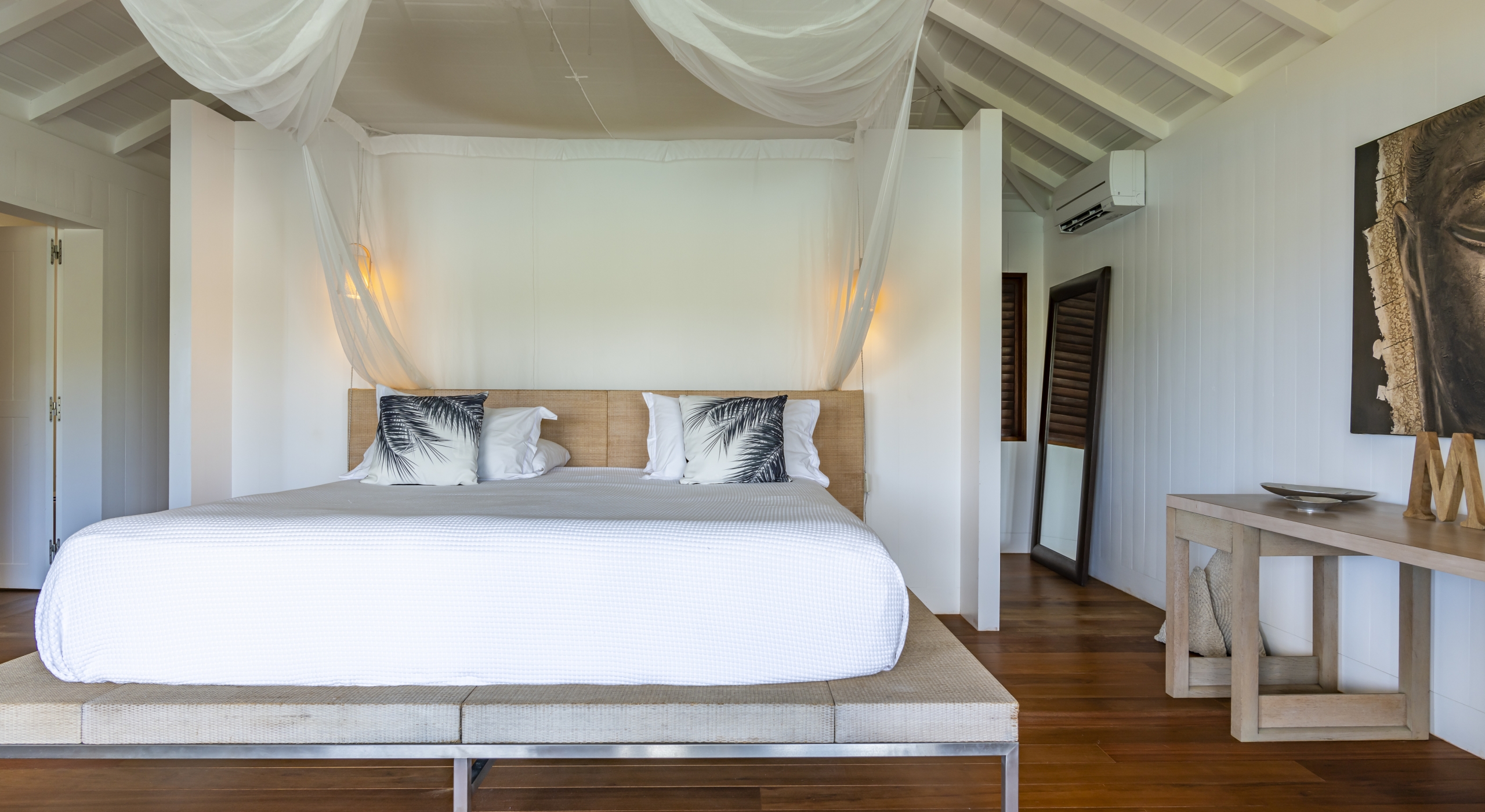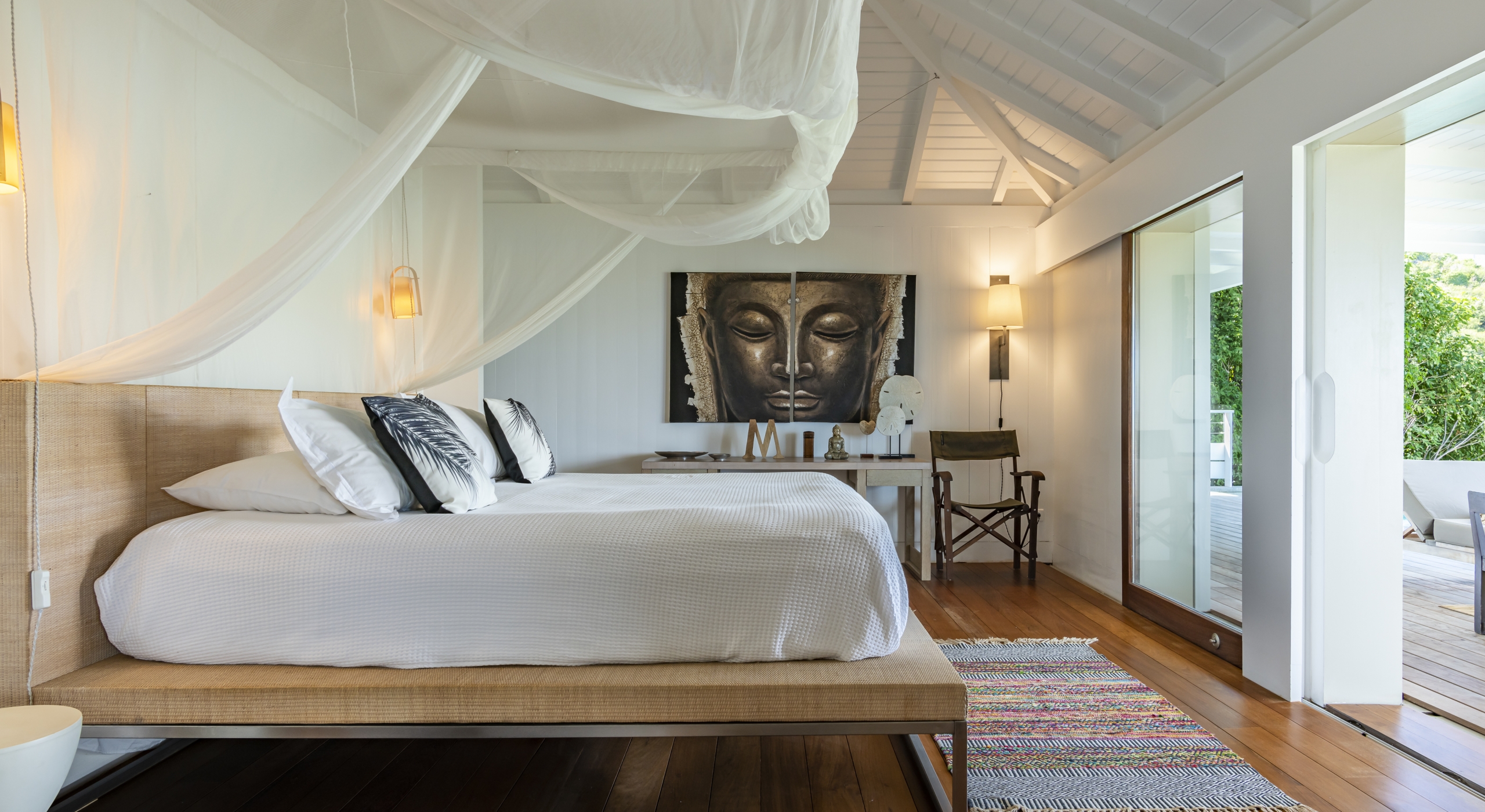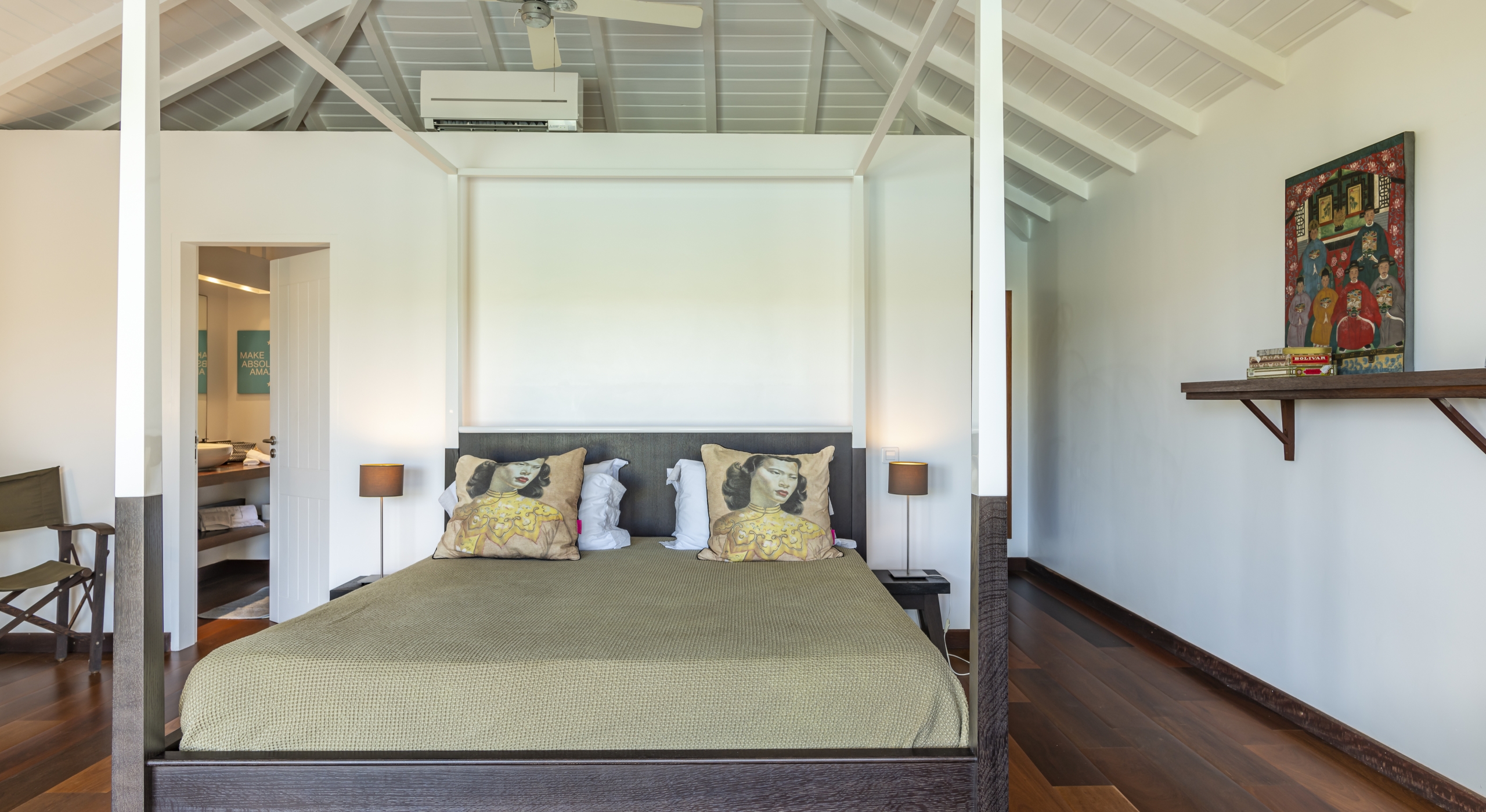 The master bedroom is connected to the living. The chic and sober decoration is signed Christian Liaigre.